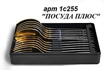Толщина-3 мм Вилка столовая 6 шт Ложка столовая 6 шт Размеры упаковки 210 × 150 × 55 мм Вес 0.82 кг Золотистое покрытие (Нитрид-Титановое)